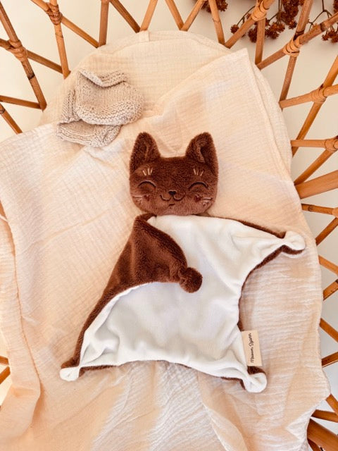 Sasha le Chat - Doudou Chat personnalisé - Minky Chocolat