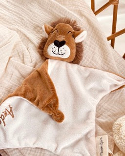 Je vous présente le doudou plat Simon le Lion. Sa bouille n'est pas trop mignonne ? Vous pouvez le personnaliser au grés de vos envies pour qu'il devienne le compagnon idéal de bébé. Sélectionnez les tissus en fonction de l'univers dans lequel vous souhaitez l'accueillir.